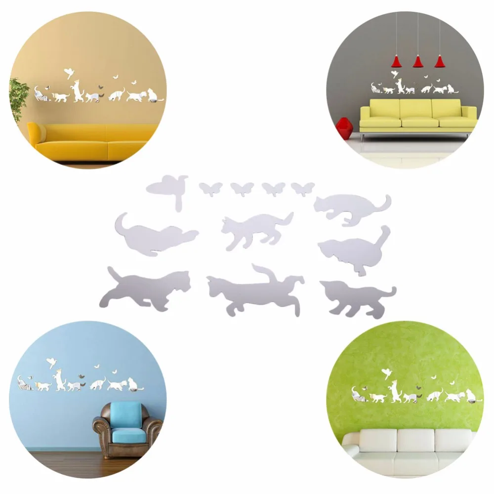 DIY Silver Modern Mirror Wall Sticker Cats Square Heart ... from www.channypicture.com Flying baloon cat wall sticker home decor vinyl decal wall poster.